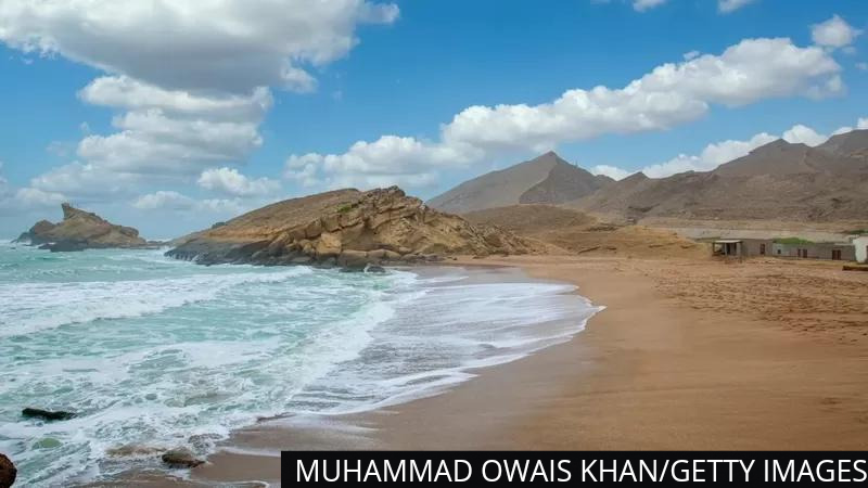 | Much of the Makran Coastal Highway passes through the Arabian Sea |
